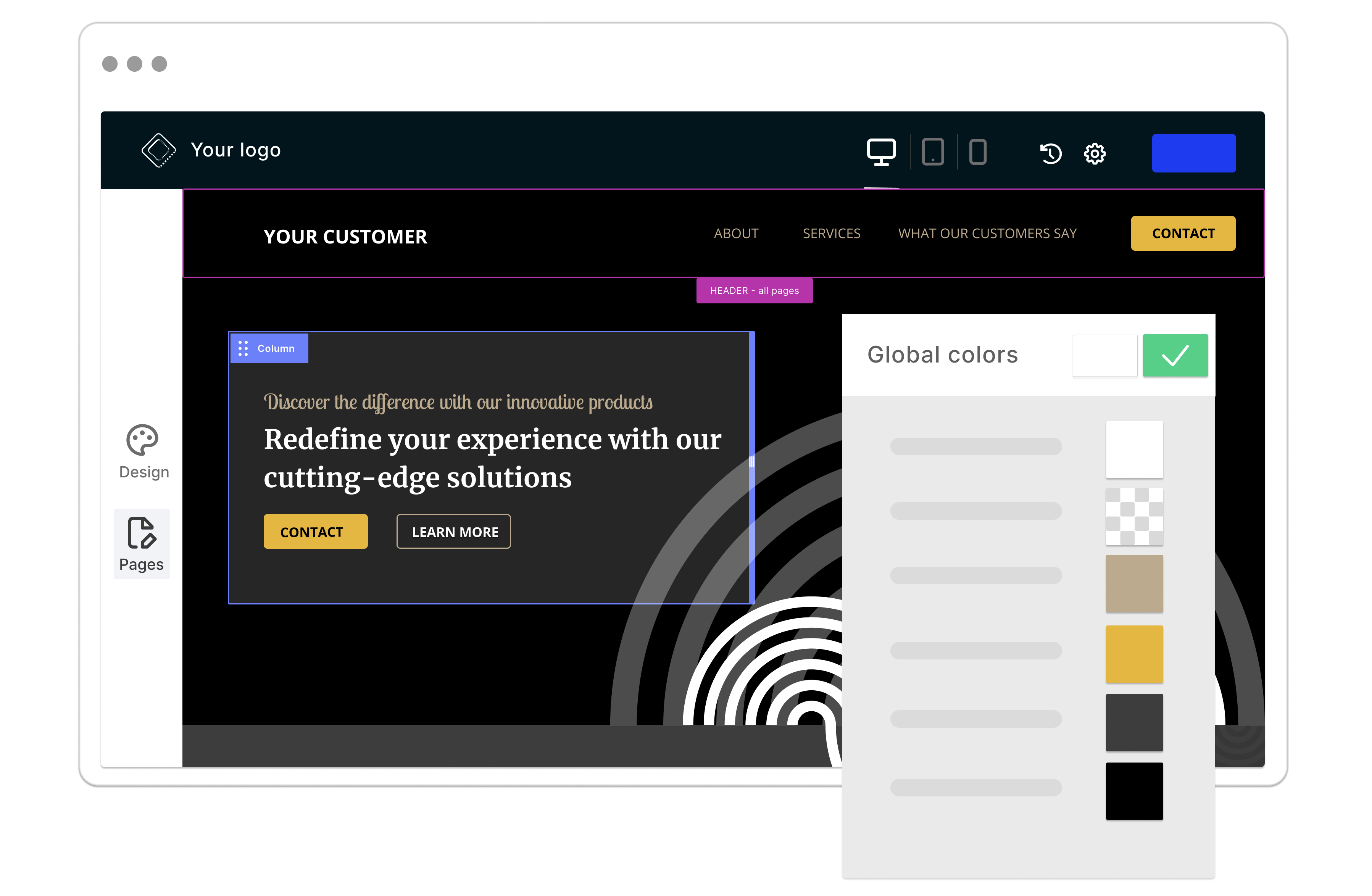 Every new page, row, or layout inherits your global design system by default, ensuring visual consistency as your site grows.